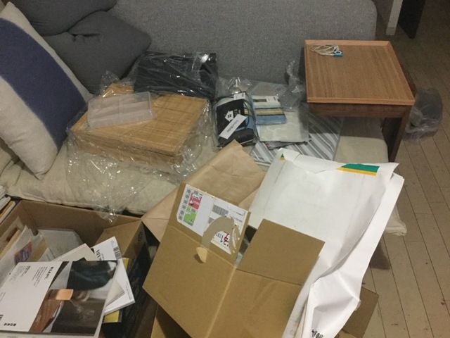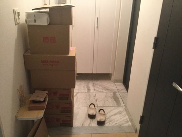 茶色い塔が残ってますが、詰め込む場所がないので諦めました。手前の解体した段ボールは頑張った証です。