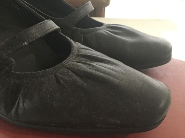 簡単ですね。でもちょっと待った。遠目でみれば草臥れた靴ですが、アップにすると