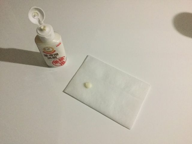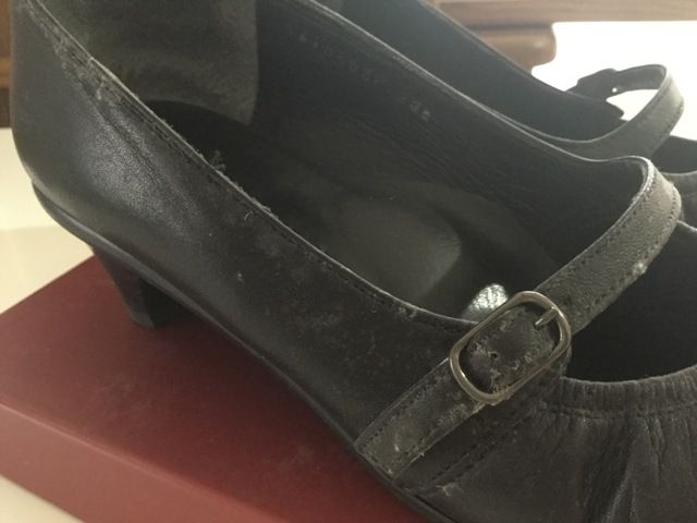 玄関に窓がなく風通しが悪いためか、手入れを全くしてなかったからか(明らかに後者)かびるんるんの住処になってます。そのまま送るのはひととしてアカン。面倒くさいけど革用洗剤でクリーニングします。