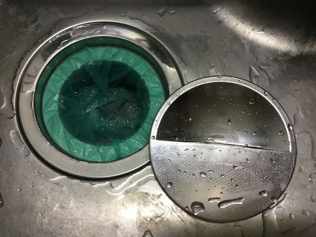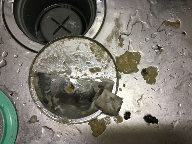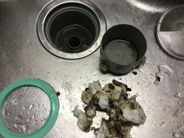 このまま水を流すとまた大洪水なので、排水口のごみ回収から。