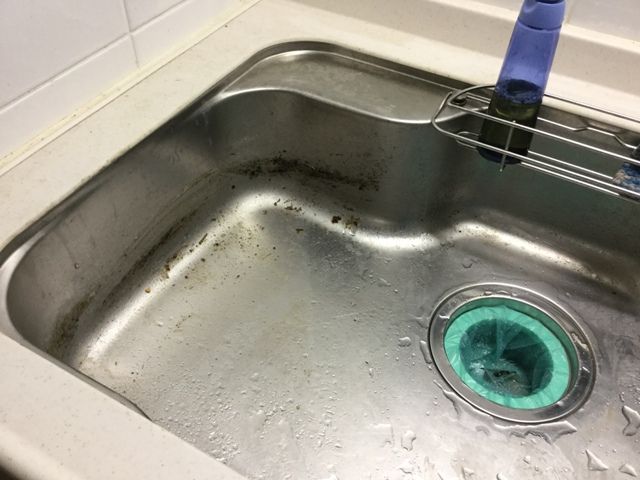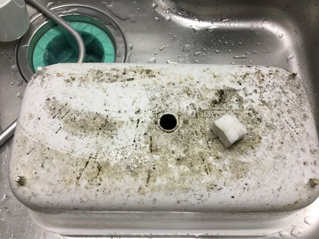 シンクの水切りかごは「シンクからの水はねを防ぐ」が売り文句です。洗った食器を拭くのが大嫌いだから、これに入れて自然乾燥すればいい、食器棚代わりに置きっぱなしもできる、と購入決定。思い描いた使い勝手で買ってよかったのですが、手入れしなければ当然こうなる訳でして。
