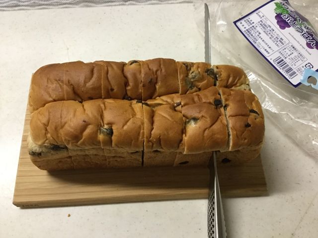 内部の高さは5cmほどなので「めちゃめちゃぶどうぱん」の4枚切りだと天井につっかえそう(トーストは分厚いのが関西人の朝食や)実験用に6枚切り(平均3cm弱)を作成します。