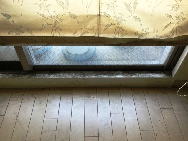 カーテンが邪魔なので、ちょっこっと上げてみます。汚れさん、こんにちは。