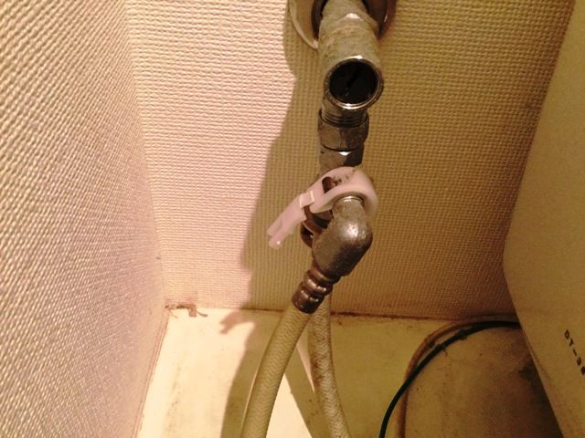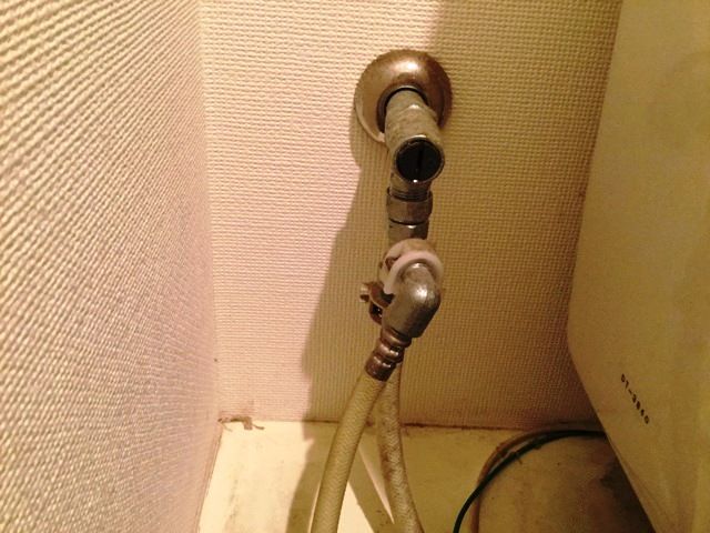 このままだと、ウォシュレットの給水ホースがついてた所から水がダダ漏れになるので、分岐栓を撤去します。