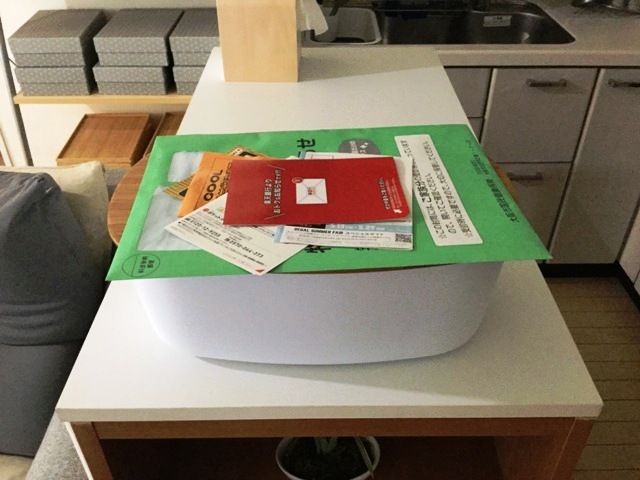 ブレッドボックスの上には郵便物。保管の必要ないのばかりです、なんでここに置いとくかな。
