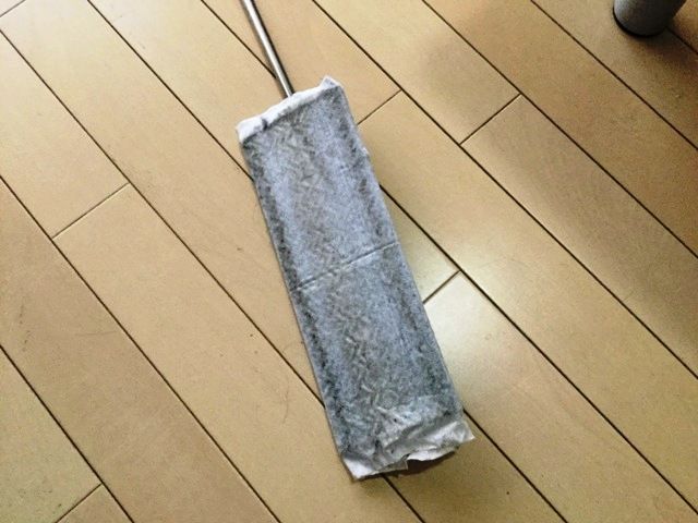ブラーバの水拭きシートはマイクロファイバー製だそうです。ならばこちらも、といきたいところですが、このフロアワイプはシートのはめ込み部分の遊びが少なく、手持ちのマイクロふきんがうまく留められないんです。